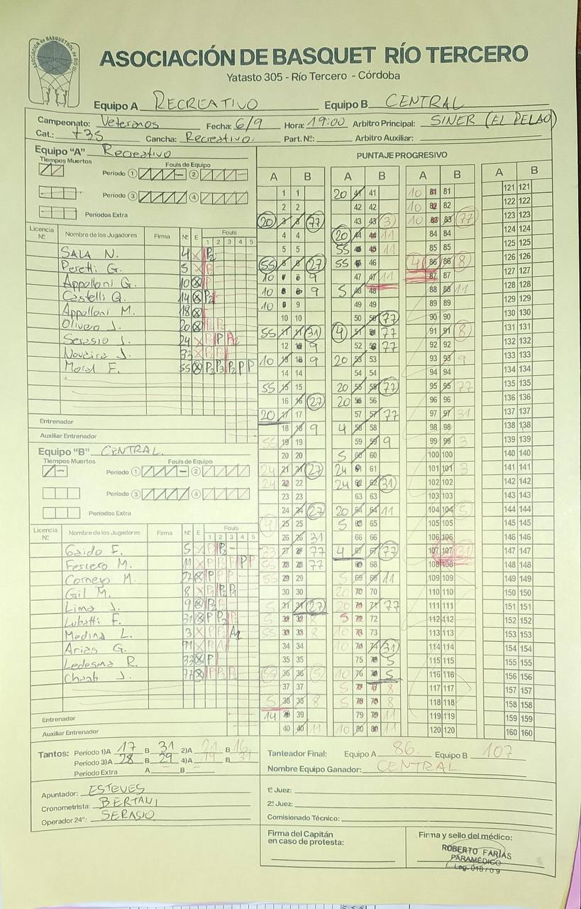 Si un jugador figura en ROJO, fue descalificado por acumulación de A, T o por Expulsión. FI INCLUYE A y T.