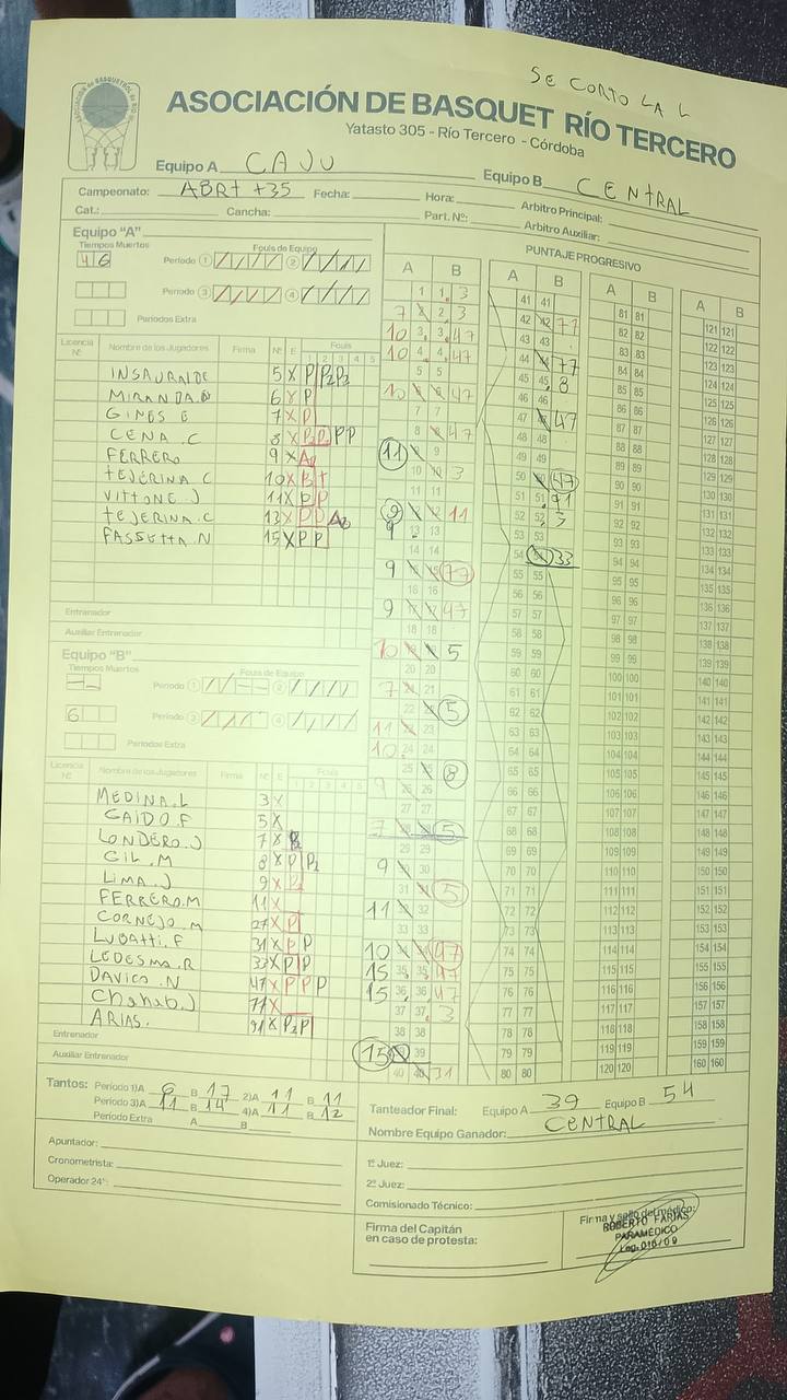 Si un jugador figura en ROJO, fue descalificado por acumulación de A, T o por Expulsión. FI INCLUYE A y T.