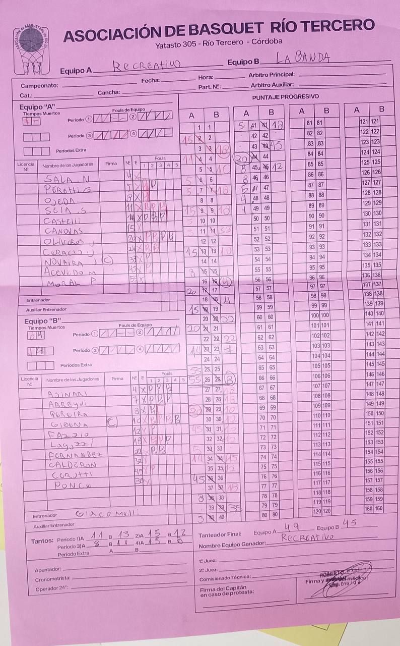 Si un jugador figura en ROJO, fue descalificado por acumulación de A, T o por Expulsión. FI INCLUYE A y T.