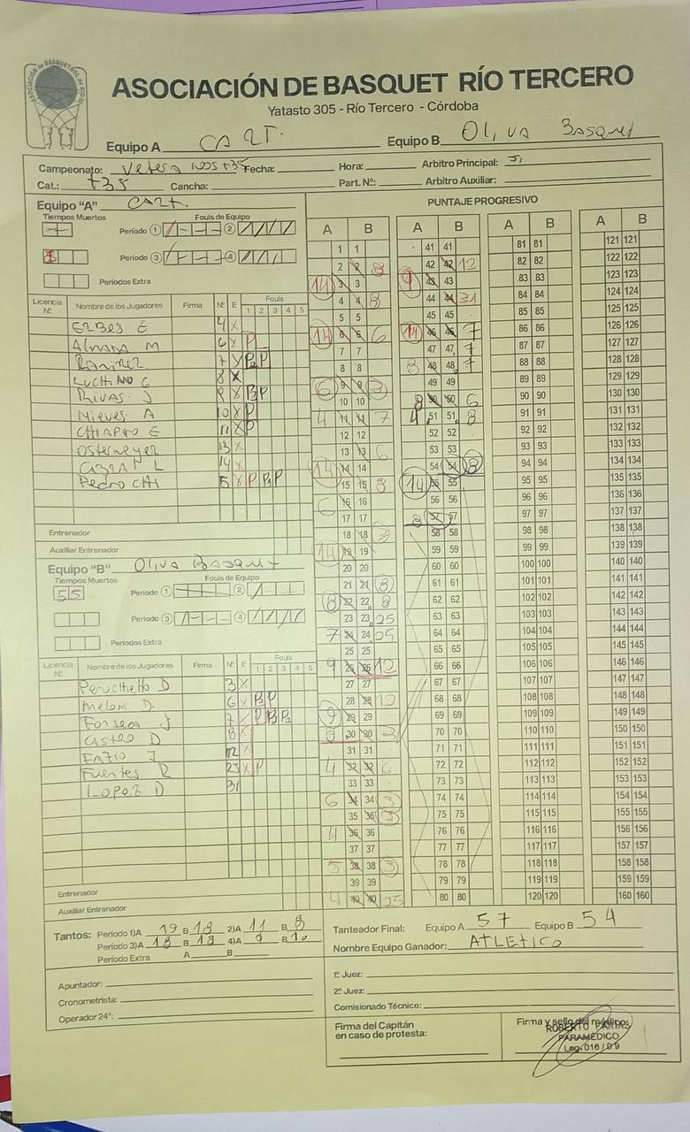 Si un jugador figura en ROJO, fue descalificado por acumulación de A, T o por Expulsión. FI INCLUYE A y T.