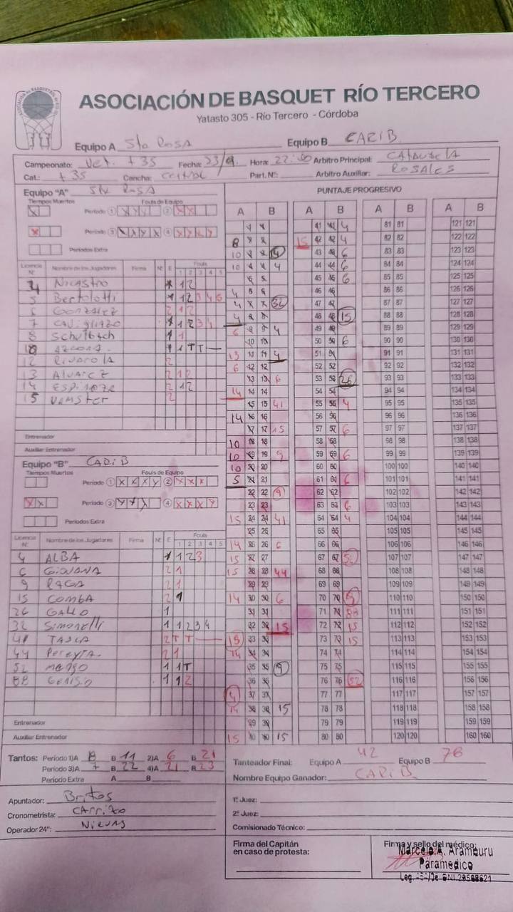 Si un jugador figura en ROJO, fue descalificado por acumulación de A, T o por Expulsión. FI INCLUYE A y T.