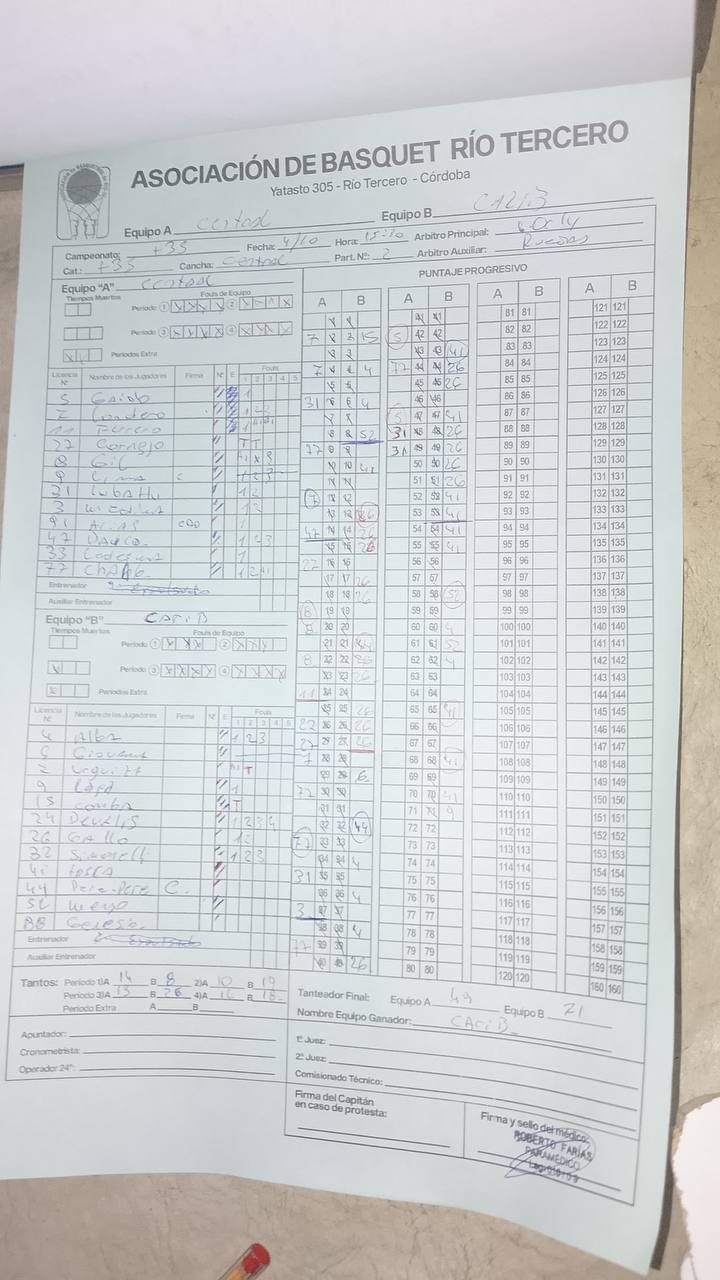 Si un jugador figura en ROJO, fue descalificado por acumulación de A, T o por Expulsión. FI INCLUYE A y T.