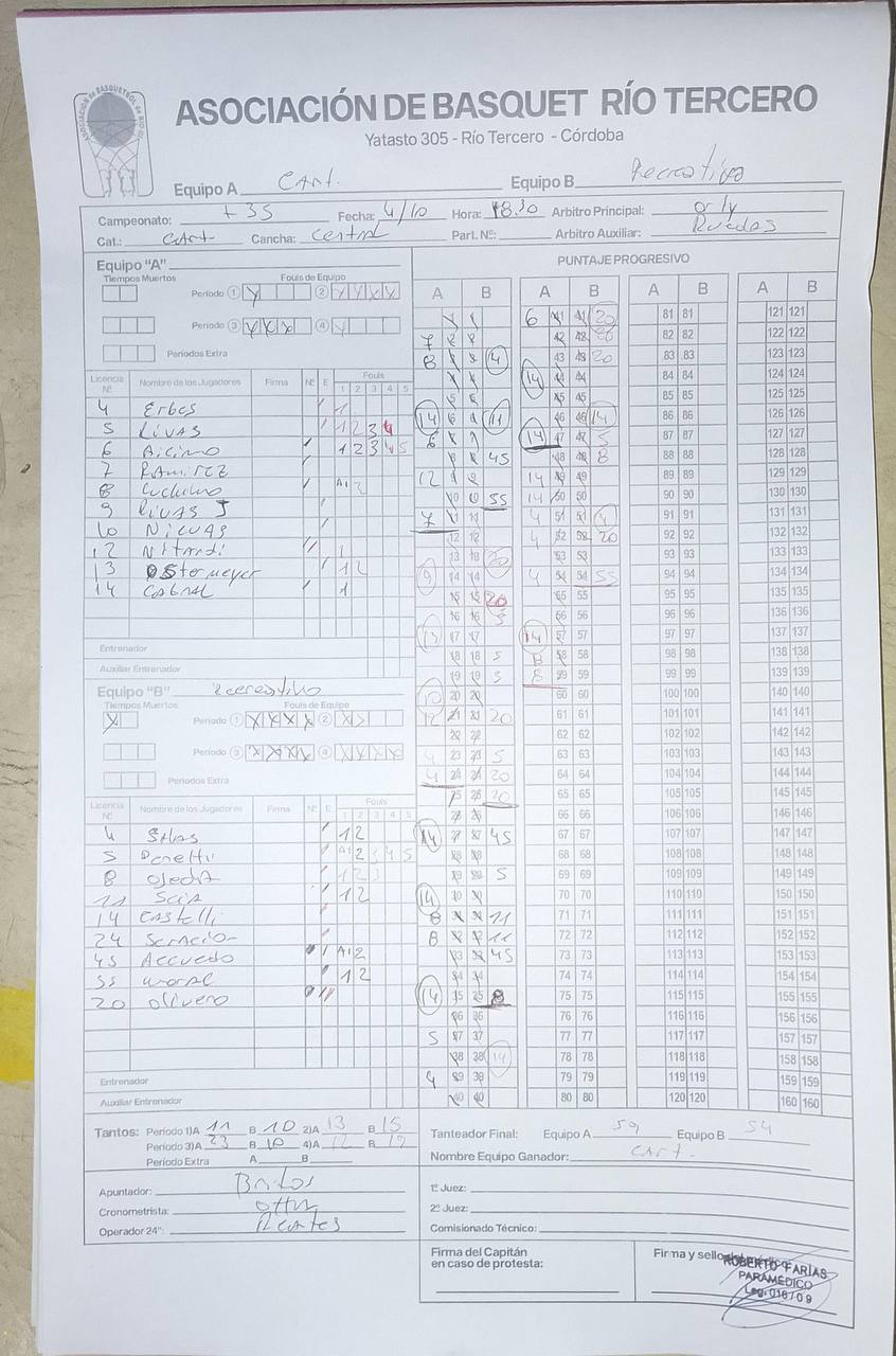 Si un jugador figura en ROJO, fue descalificado por acumulación de A, T o por Expulsión. FI INCLUYE A y T.
