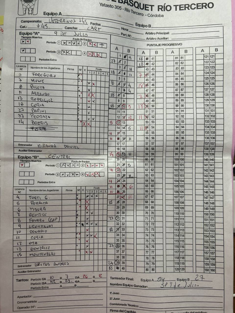 Si un jugador figura en ROJO, fue descalificado por acumulación de A, T o por Expulsión. FI INCLUYE A y T.
