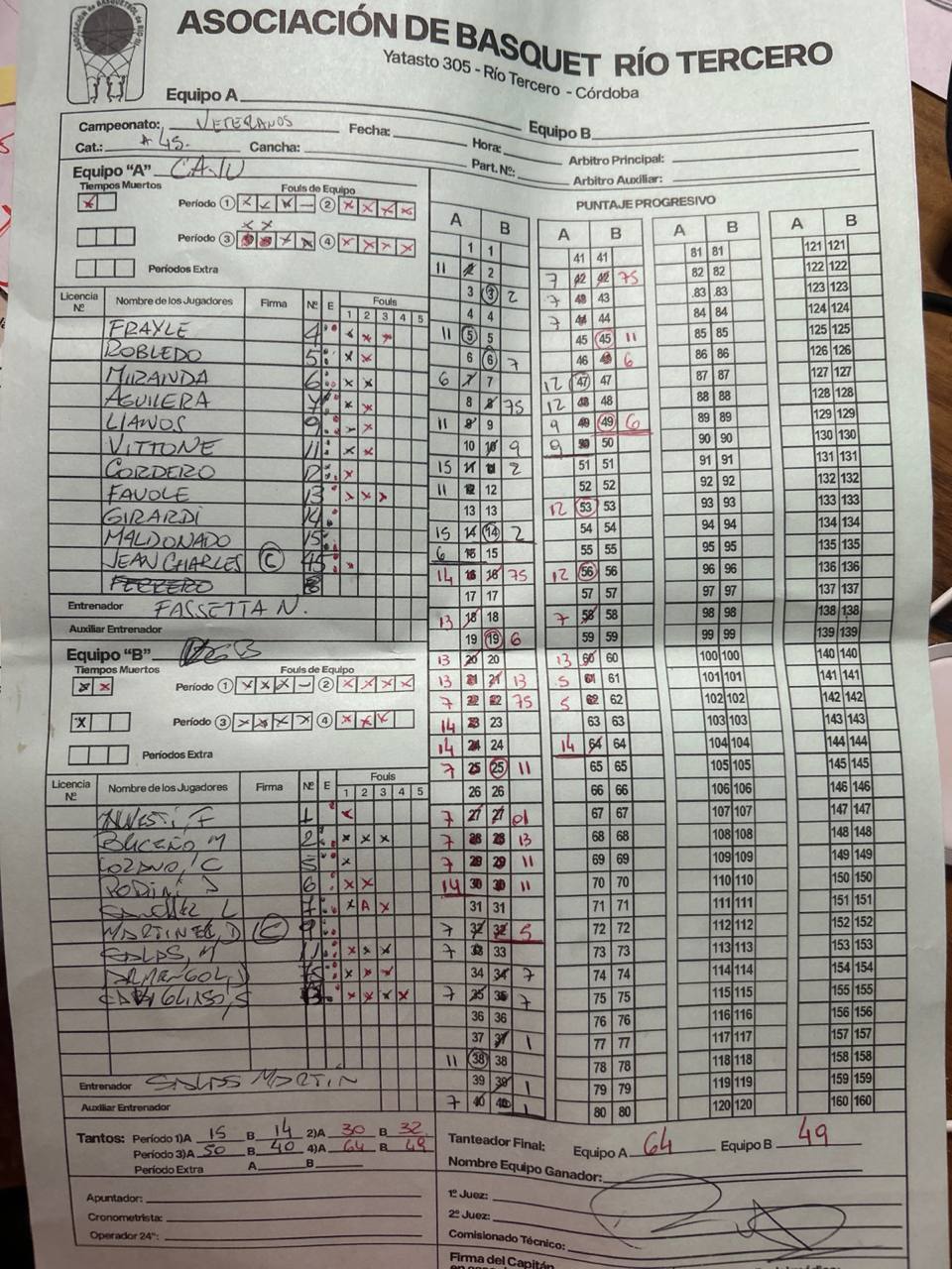 Si un jugador figura en ROJO, fue descalificado por acumulación de A, T o por Expulsión. FI INCLUYE A y T.