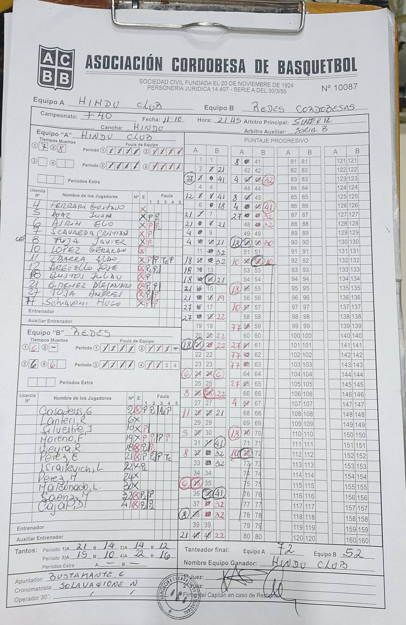 Si un jugador figura en ROJO, fue descalificado por acumulación de A, T o por Expulsión. FI INCLUYE A y T.