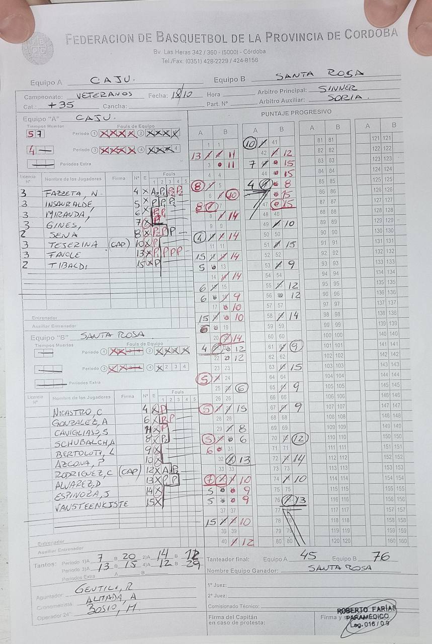 Si un jugador figura en ROJO, fue descalificado por acumulación de A, T o por Expulsión. FI INCLUYE A y T.