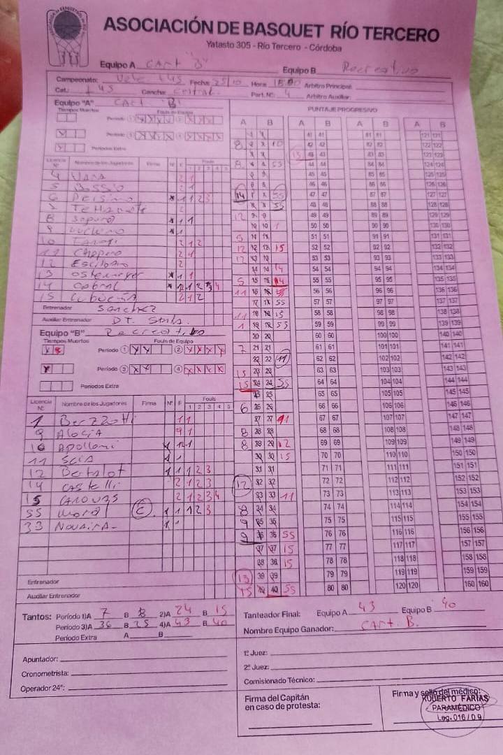 Si un jugador figura en ROJO, fue descalificado por acumulación de A, T o por Expulsión. FI INCLUYE A y T.