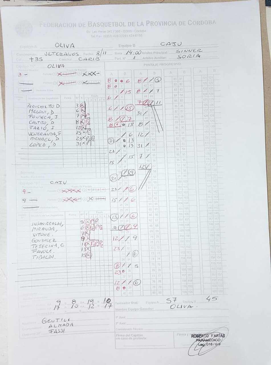 Si un jugador figura en ROJO, fue descalificado por acumulación de A, T o por Expulsión. FI INCLUYE A y T.