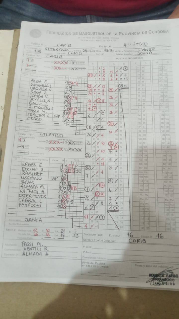 Si un jugador figura en ROJO, fue descalificado por acumulación de A, T o por Expulsión. FI INCLUYE A y T.