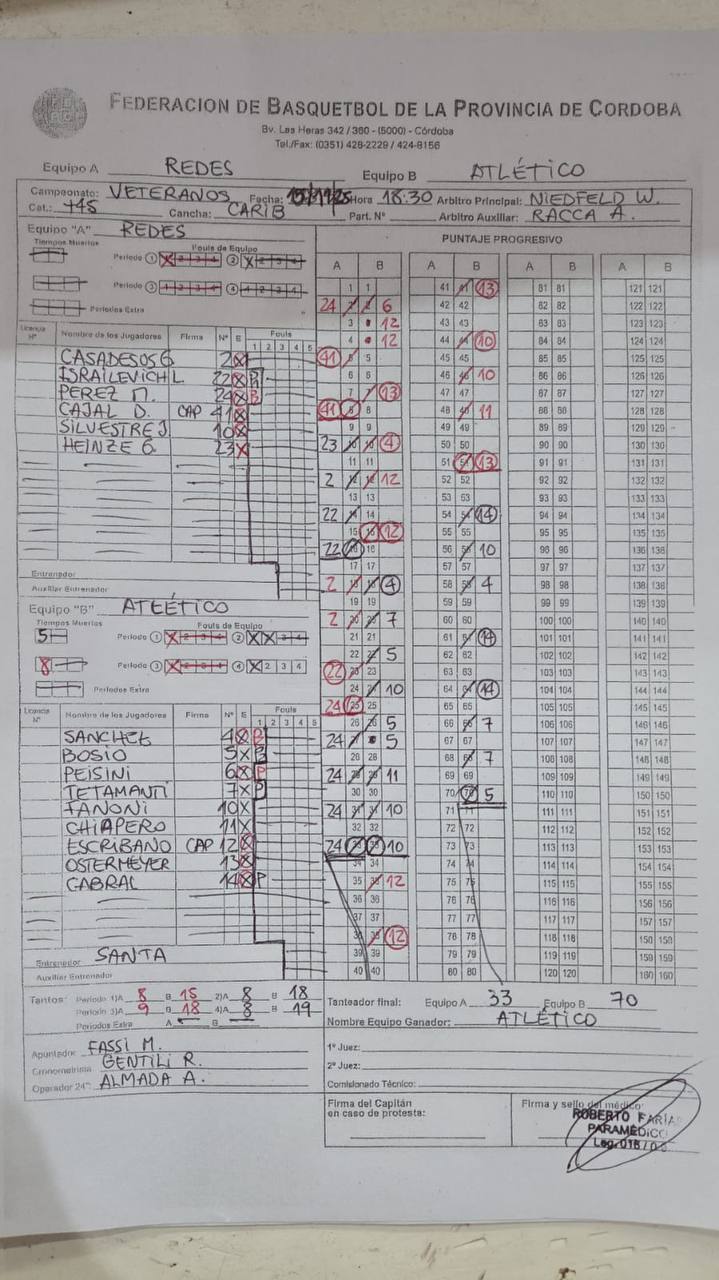 Si un jugador figura en ROJO, fue descalificado por acumulación de A, T o por Expulsión. FI INCLUYE A y T.