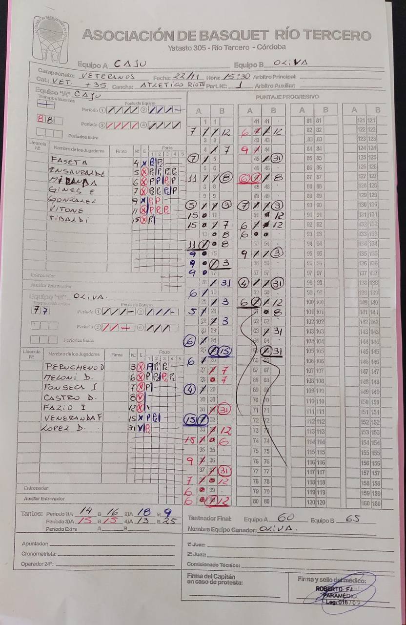 Si un jugador figura en ROJO, fue descalificado por acumulación de A, T o por Expulsión. FI INCLUYE A y T.