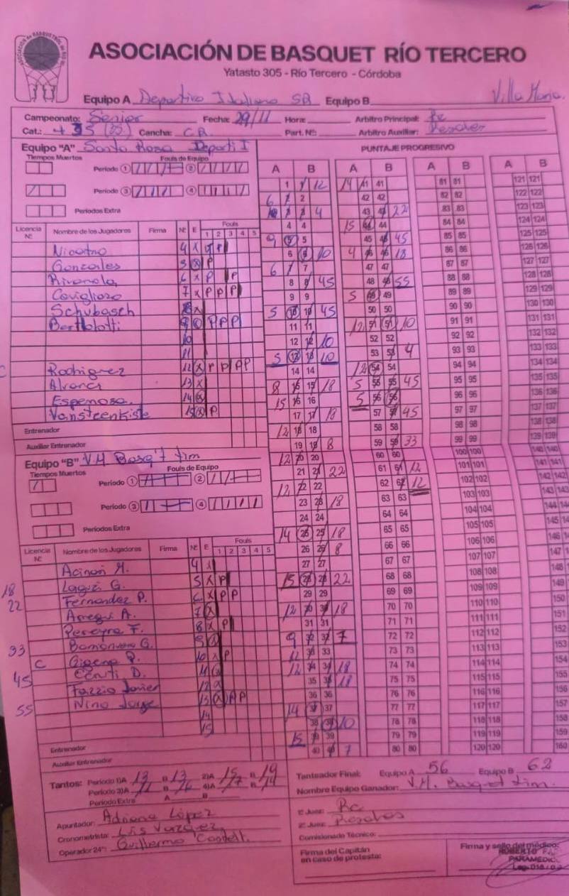 Si un jugador figura en ROJO, fue descalificado por acumulación de A, T o por Expulsión. FI INCLUYE A y T.