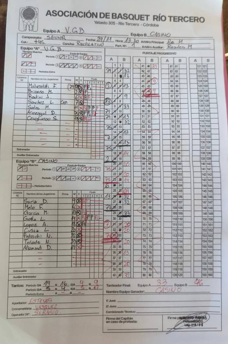 Si un jugador figura en ROJO, fue descalificado por acumulación de A, T o por Expulsión. FI INCLUYE A y T.