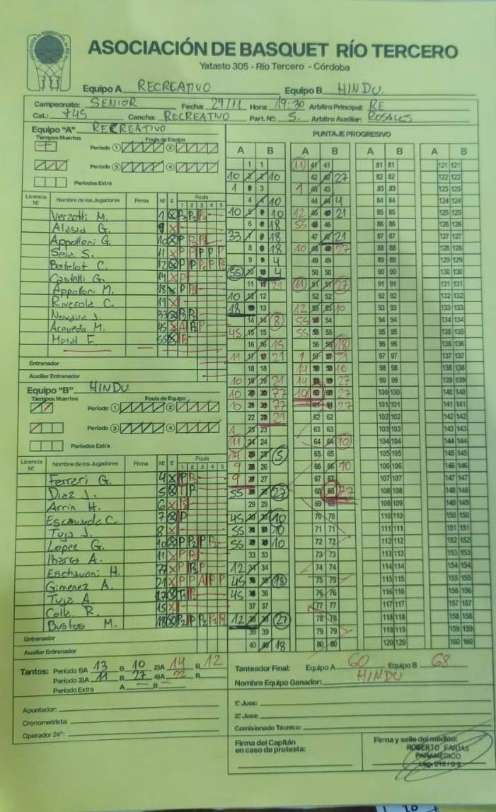 Si un jugador figura en ROJO, fue descalificado por acumulación de A, T o por Expulsión. FI INCLUYE A y T.