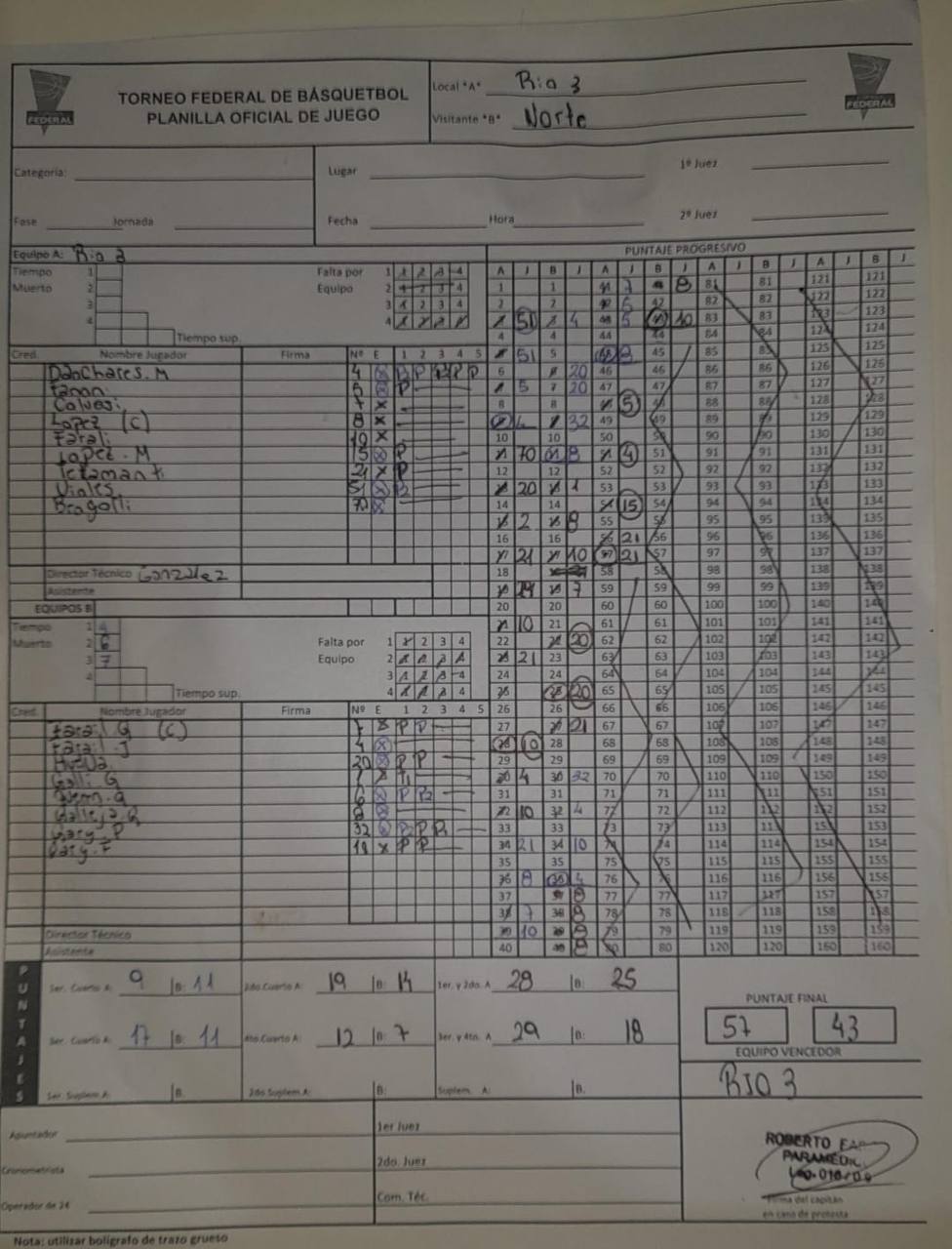 Si un jugador figura en ROJO, fue descalificado por acumulación de A, T o por Expulsión. FI INCLUYE A y T.